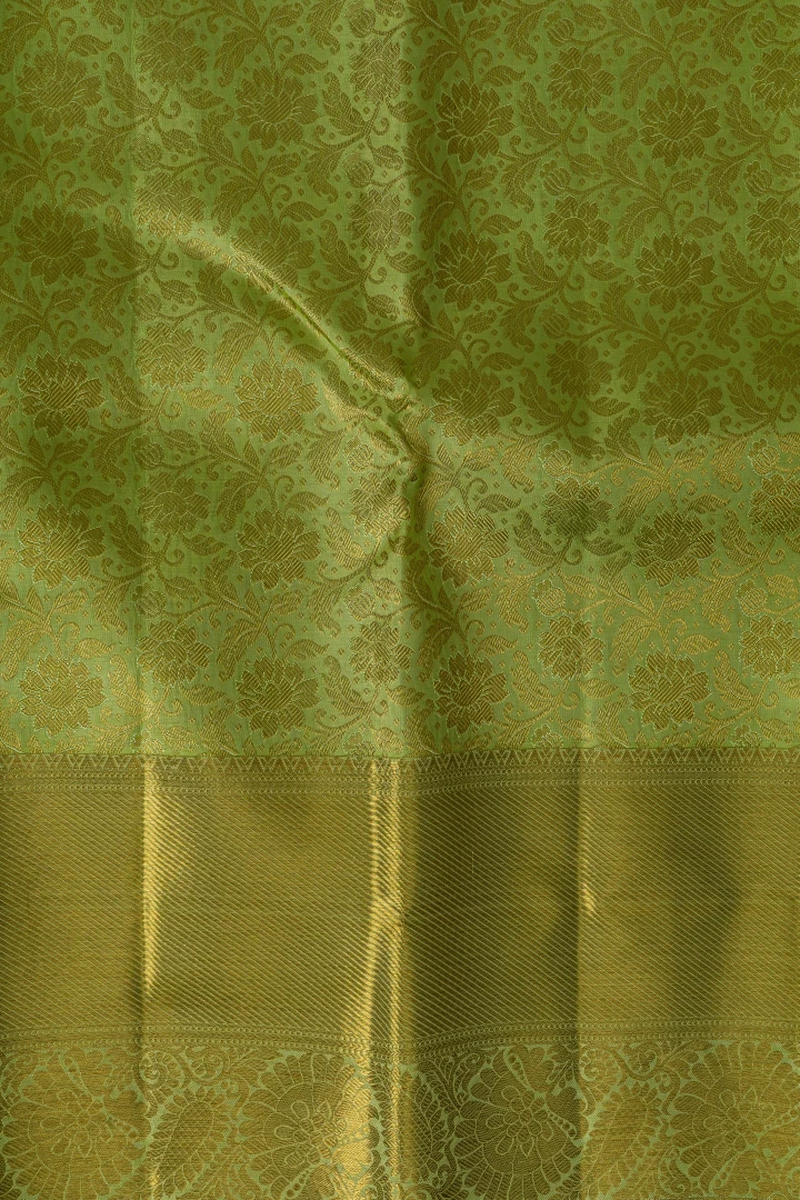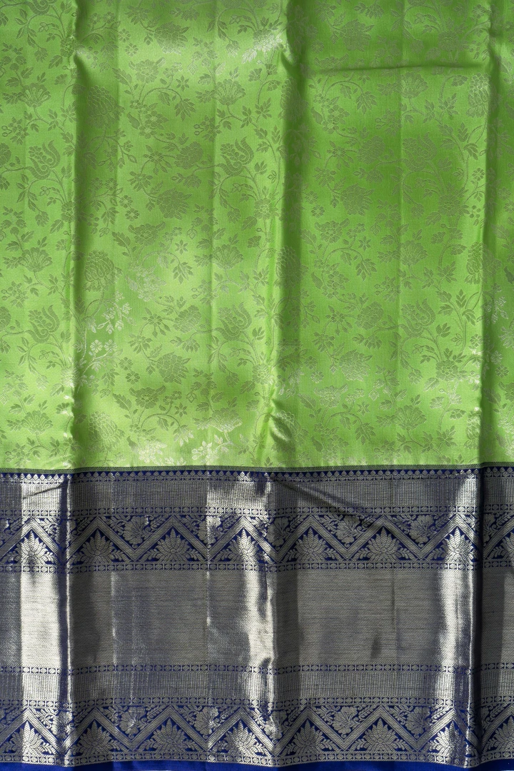 Parrot Green Pure Kanchivaram Silk With Silver Zari Brocade